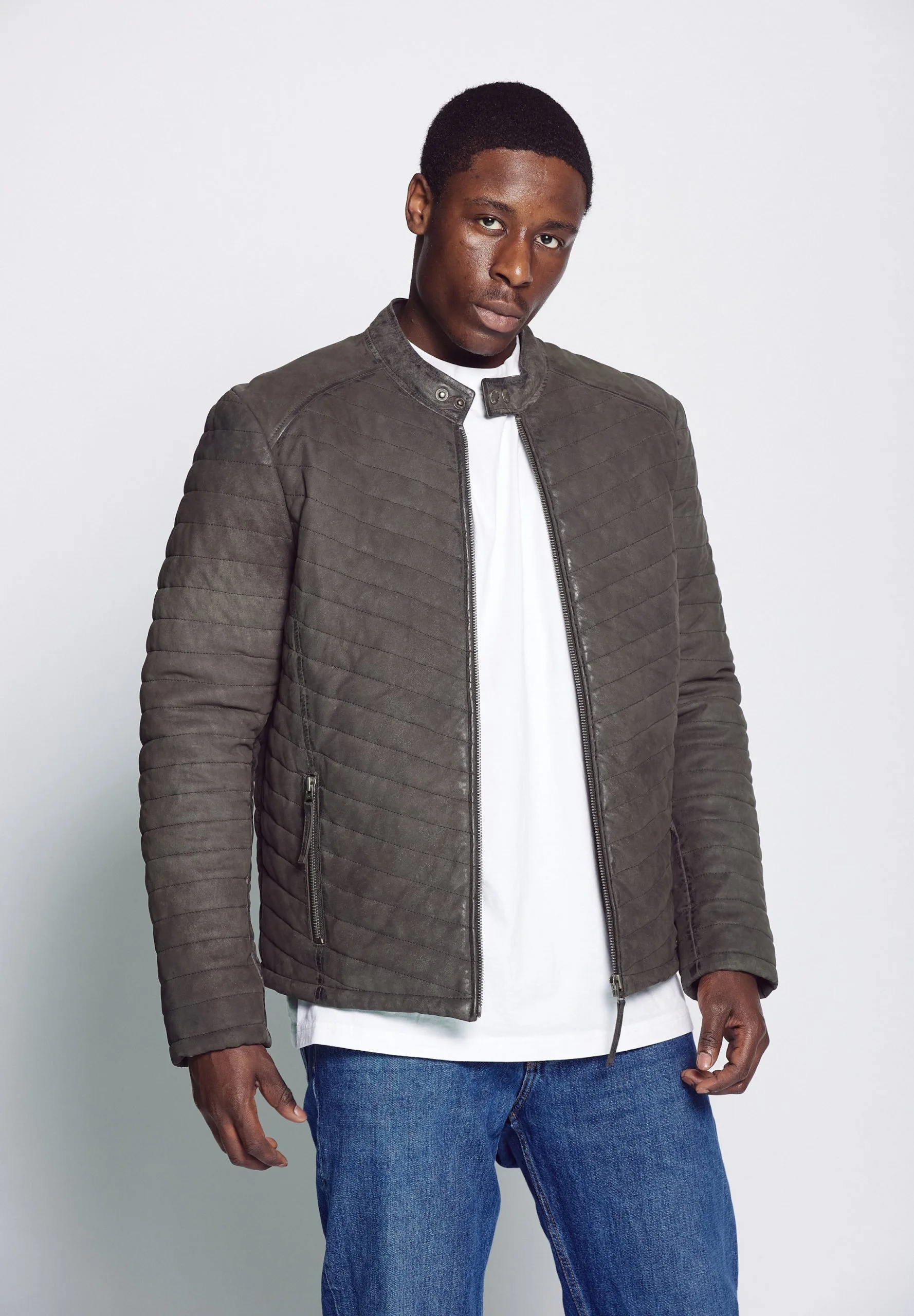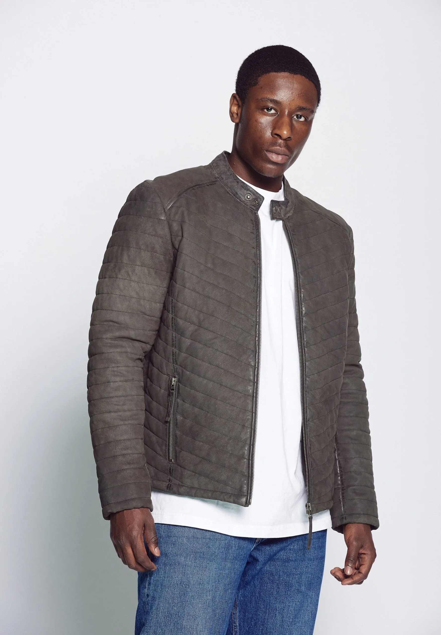 Mustang Leren Jassen Tussenjas Heren Grafiet